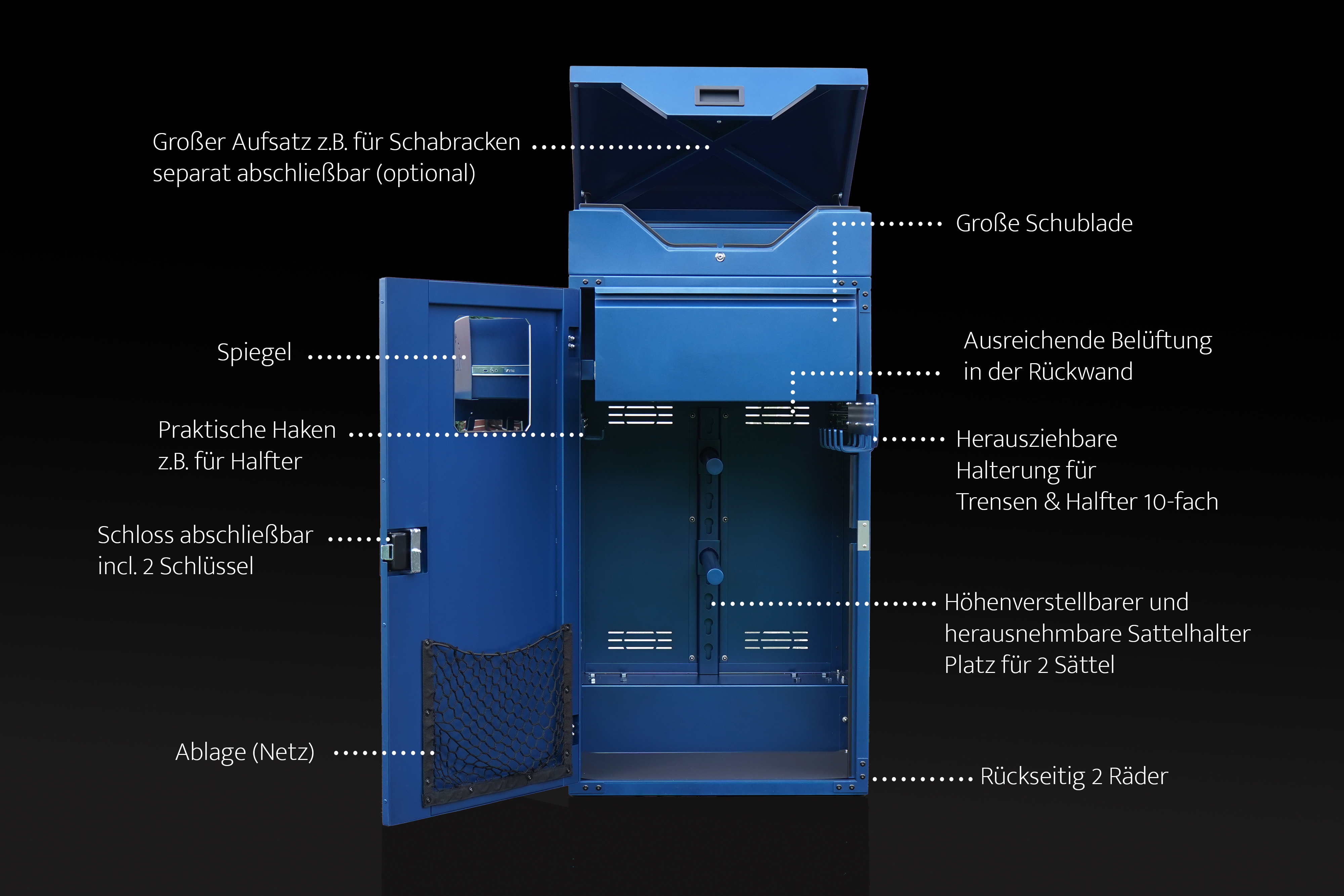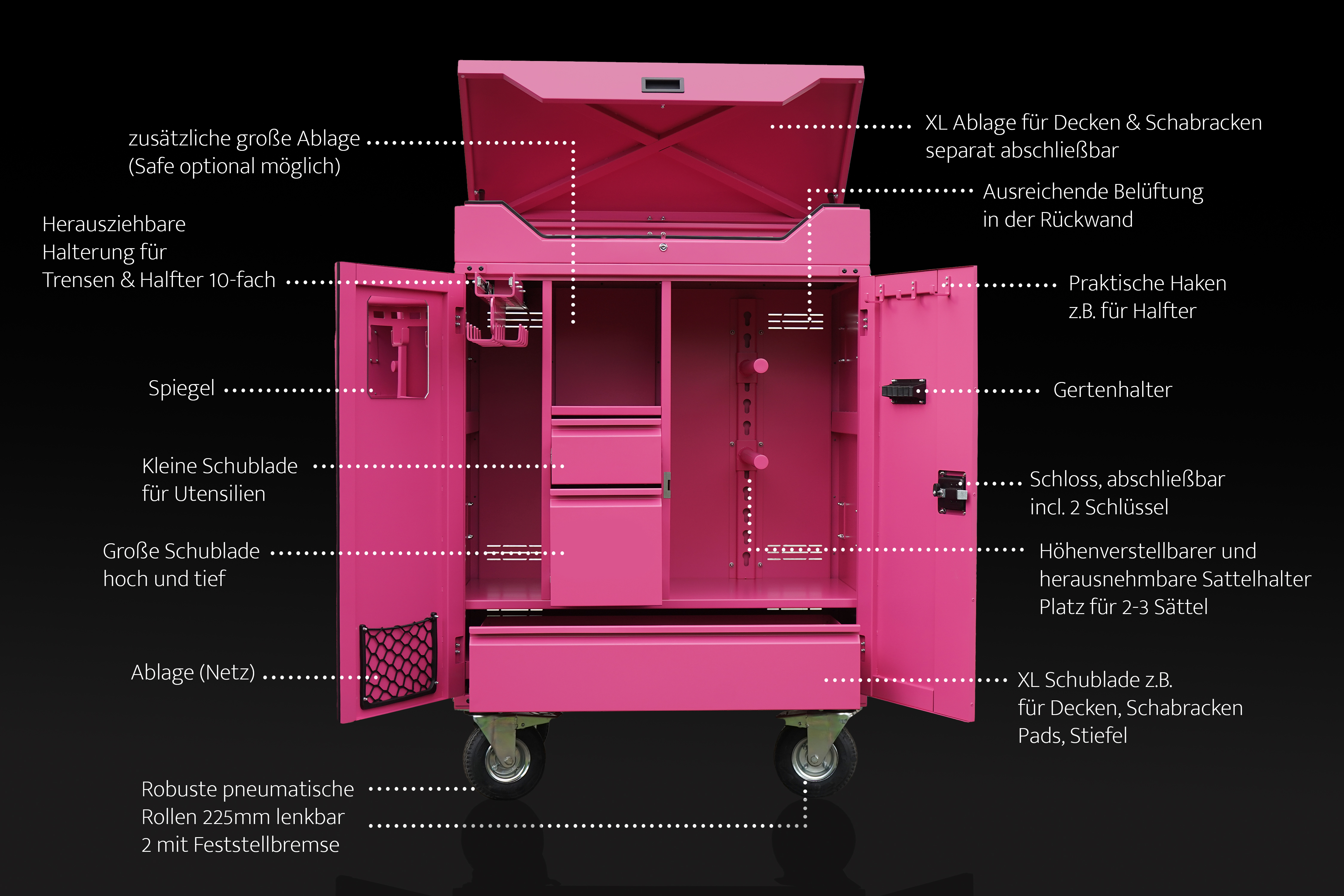 Personalisierung: Gestalten Sie Ihren Sattelschrank ganz nach Ihren Wünschen mit individuellen Folierungen, Logos oder Grafiken, die Ihren Schrank zu einem echten Unikat machen.